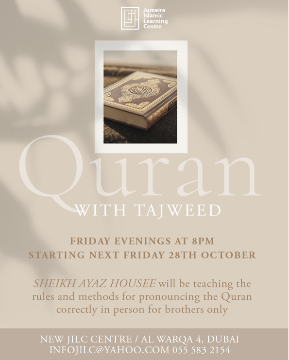 Dar Al Ber Society in Dubai invites everyone in the UAE to join an Intensive Tafsir Course in the English Language with Ustadh Muhammad Tim Humble where he covers the Tafsir of Juz Tabarak.